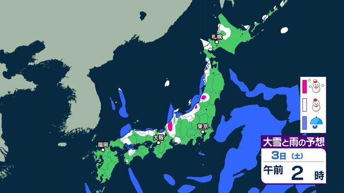 【大雪情報】3日にかけて大雪に警戒・なだれにも注意…警報級となるところも[全国の雪のシミュレーションを見る(1時間ごと)]気象庁発表 テレビ山口 2026年1月2日(金) 17:26 国内 ~3日午前6時までの雪のシミュレーション(全国・1時間ごと)