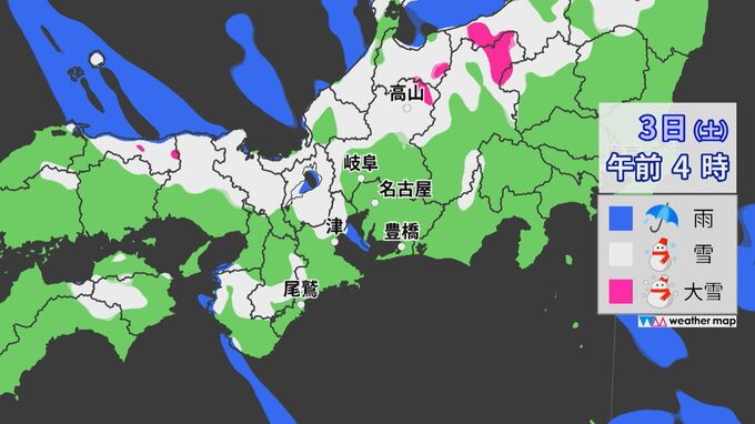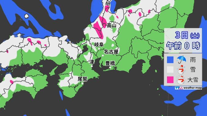 【大雪情報】2日夜から3日昼前まで三重県中心に大雪のおそれ 最新の雪・雨シミュレーション 路面凍結による交通障害に注意 2日は名古屋でも雪が舞う CBCテレビ 2026年1月2日(金) 18:07 国内 雪シミュレーション①今夜から未明