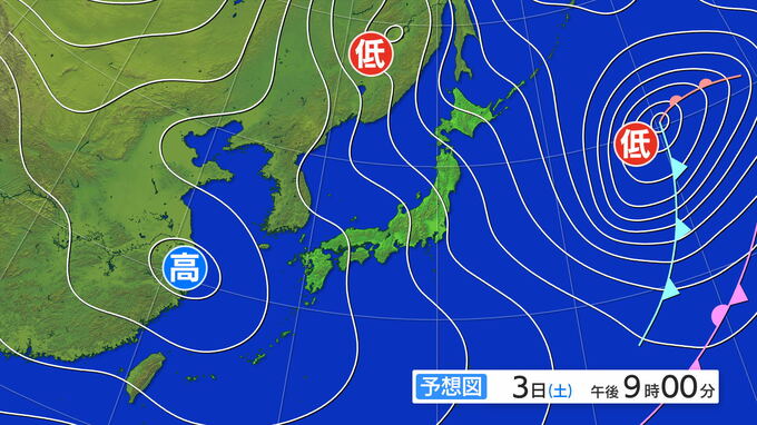 【画像①】はきょう(3日)午後9時の予想天気図です。