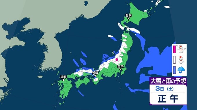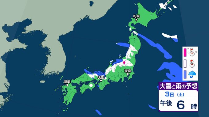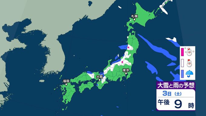 【新春寒波】日本海側を中心に大雪 降雪量は関東甲信40㎝、近畿30㎝、中国地方25㎝の予報→「Uターンラッシュ」など交通障害に注意を【気象庁 雪雨シミュレーション/3日・午前9時更新】 RSK山陽放送 2026年1月3日(土) 08:46 国内 雪と雨のシミレーションをみる 3日(土)3時間ごとの雪と雨のシミレーション【画像②~⑥】 【画像②】 【画像③】 【画像④】 【画像⑤】 【画像⑥】