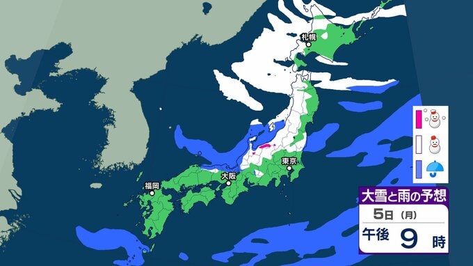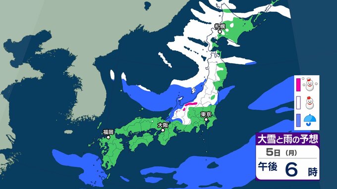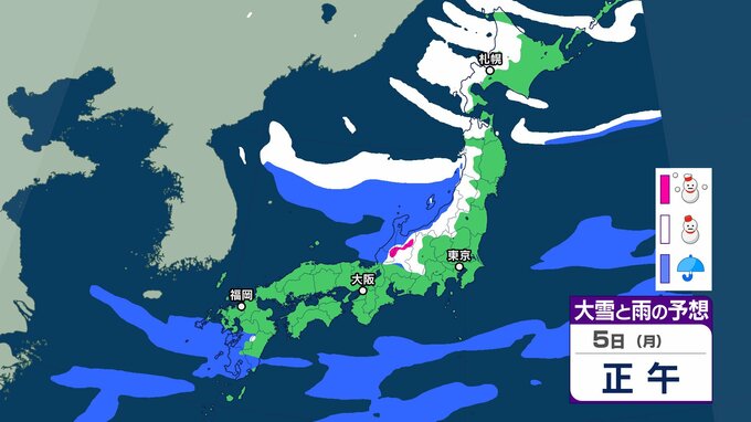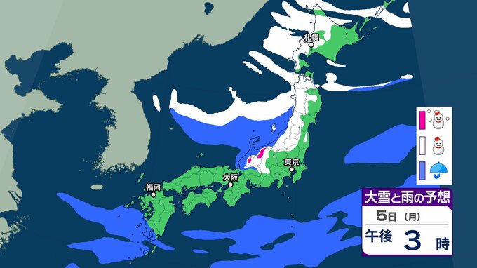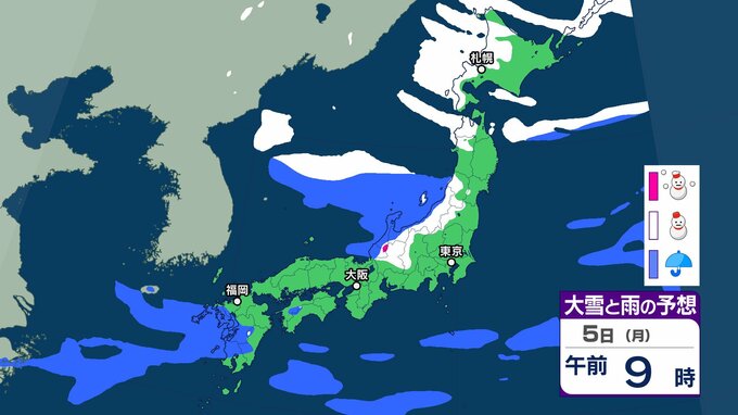 【新春寒波】日本海側を中心に大雪 降雪量は関東甲信40㎝、近畿30㎝、中国地方25㎝の予報→「Uターンラッシュ」など交通障害に注意を【気象庁 雪雨シミュレーション/3日・午前9時更新】 RSK山陽放送 2026年1月3日(土) 08:46 国内 5日(月)雪と雨のシミレーションをみる 5日(月)3時間ごとの雪と雨のシミレーション【画像⑮~㉒】 【画像⑮】 【画像⑯】 【画像⑰】 【画像⑱】 【画像⑲】 【画像⑳】 【画像㉑】 【画像㉒】