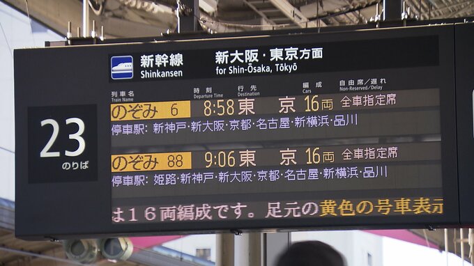 新幹線の「のぞみ」は明日まで全席指定席で運行されます。