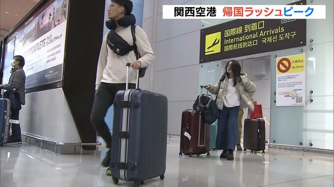 関西空港では年末年始を海外で過ごした人たちの帰国がピークを迎えています。 最大で9連休となったこの年末年始。国際線の到着口から大きなスーツケースと土産を持った人たちが次々と出てきます。 関西空港の国…