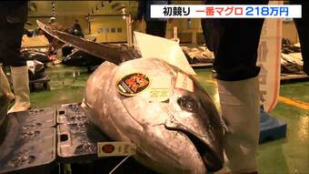 初売りでは、マグロやメカジキなどが並び仲買人が、競り落としていきました。