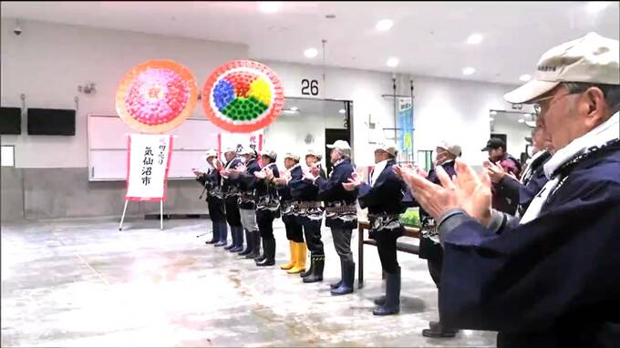 気仙沼市魚市場には4日朝、仲買人らおよそ200人が集まり今年1年の大漁を祈願しました。