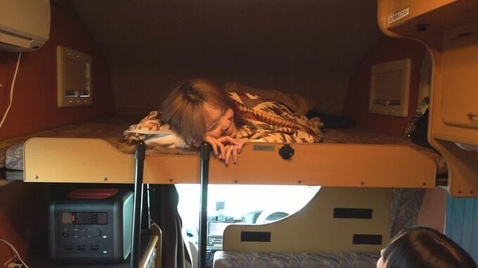 宿泊するのは、ハウスが貸し出すキャンピングカー。学生たちにとっては初めての体験です。