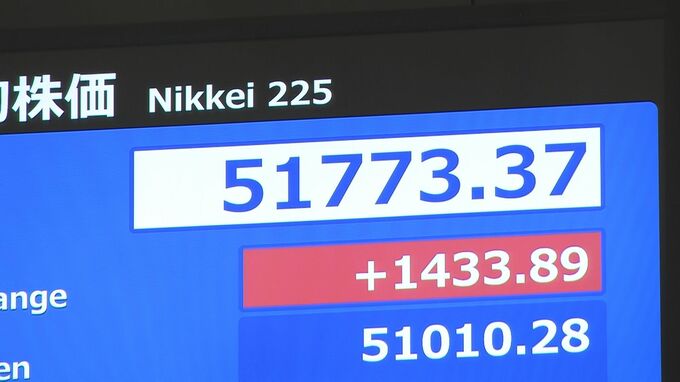新年最初の取引「大発会」を迎えた東京株式市場で、株価は一時、1400円以上値上がりし、大幅に反発して取引されています。年明け最初の取引を迎えたきょうの東京株式市場で、日経平均株価は去年の終わりと比べて67…