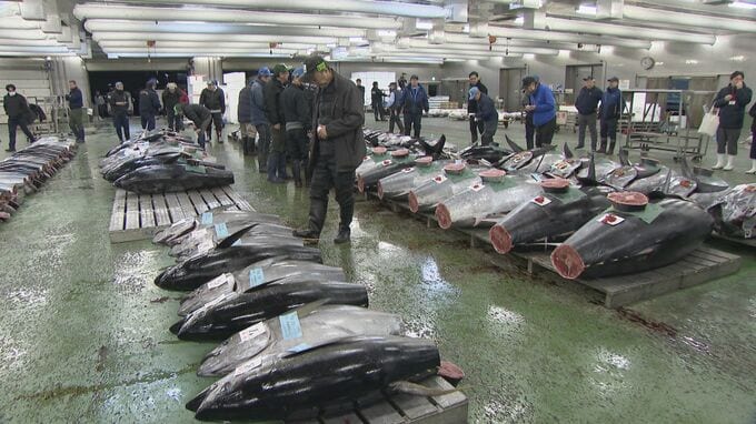 名古屋・中央卸売市場で初競り 青森・大間の天然本マグロ 最高価格は1本約650万円 競り落としたバローが刺身などにして販売 To view this video please enable JavaScript, and consider upgrading to a web browser that supports HTML5 video CBCテレビ 2026年1月5日(月) 12:13 国内 名古屋で初競り ずらりと並んだ本マグロ 名古屋の中央卸売市場では、5日午前4時半から初競りが始まり、ずらりと並んだ本マグロなどが威勢の良い掛け声と共に、次々と競り落とされていきました。