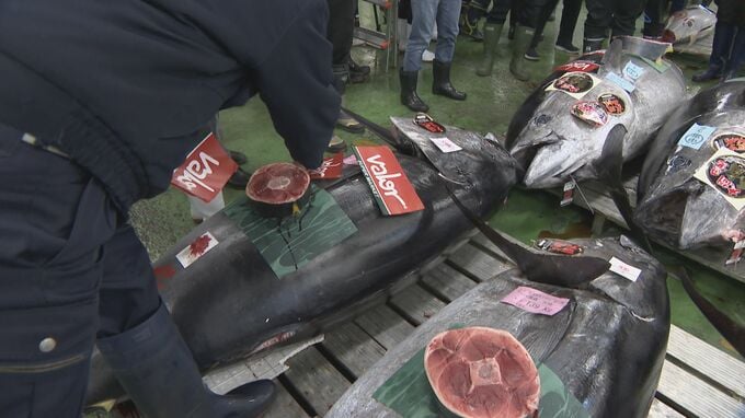 東海地方が地盤のスーパーマーケット「バロー」も、去年からマグロの初競りに参加していて、青森・大間の天然本マグロ14本を競り落としました。