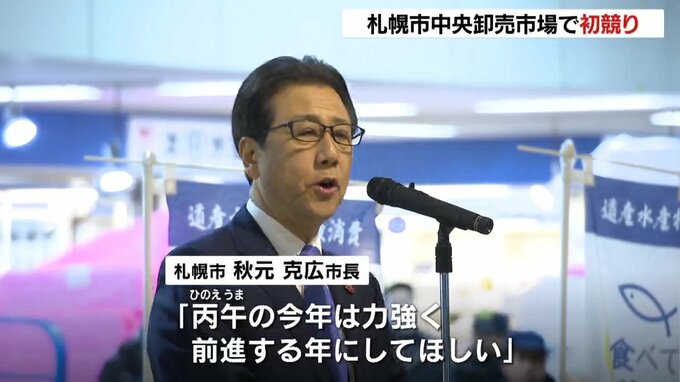 初競り式に出席した札幌市の秋元市長は、「丙午(ひのえうま)のことしは、力強く前進する年にしてほしい」と商売繁盛を祈願しました。
