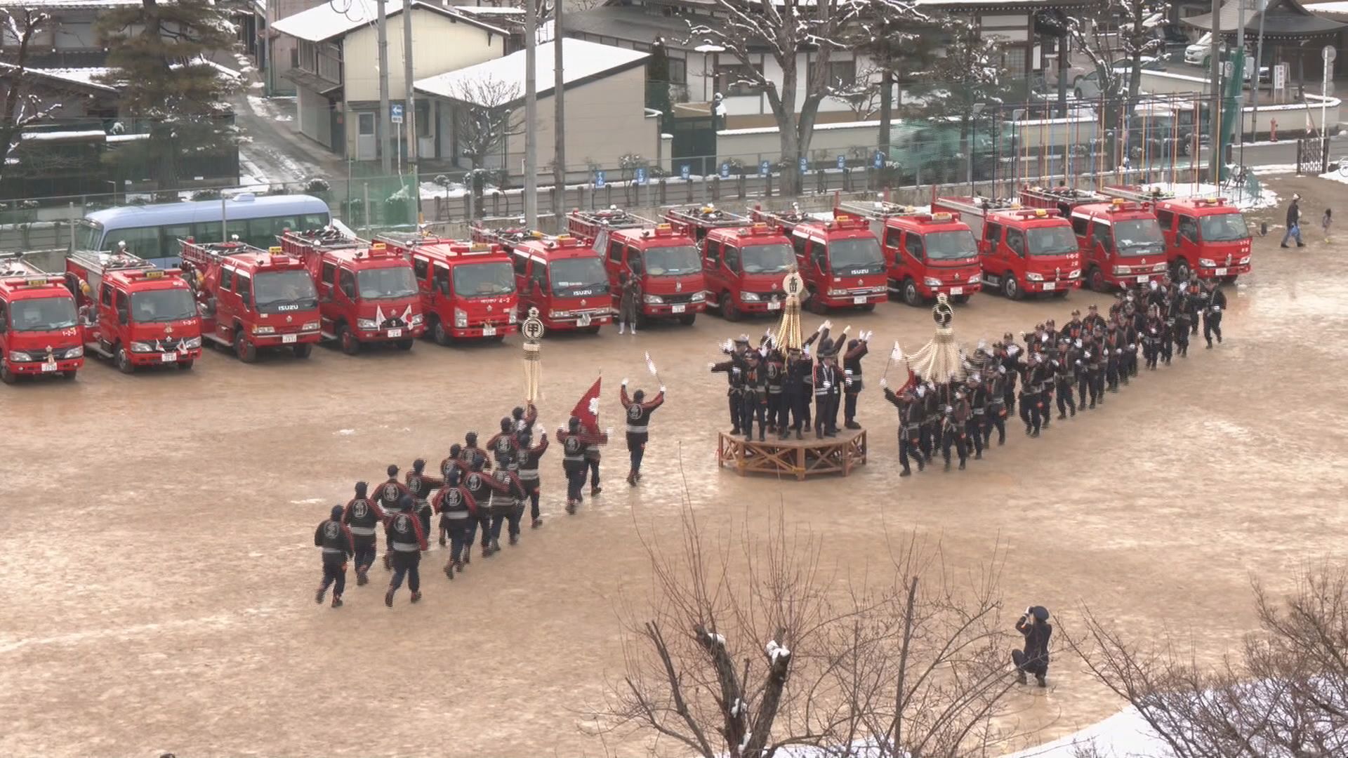 岐阜・高山市で新春恒例「消防出初式」 消防団員ら約370人が伝統の“特殊訓練”披露