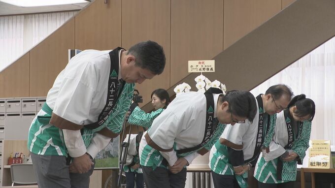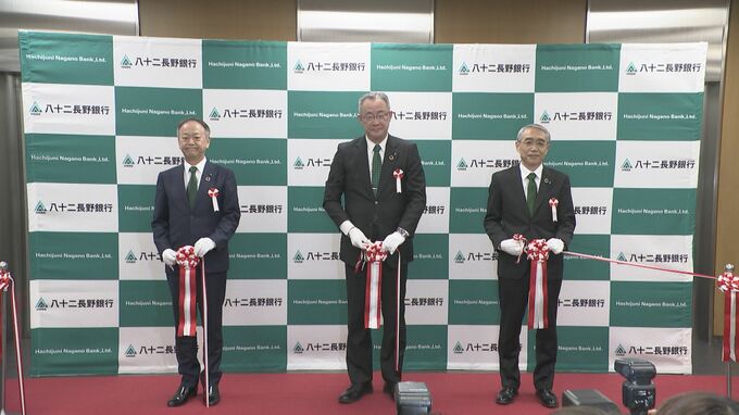 長野市の八十二長野銀行本店では、窓口営業の開始を前にオープニングセレモニーが行われ、松下正樹頭取や西澤仁志副頭取などが出席しました。