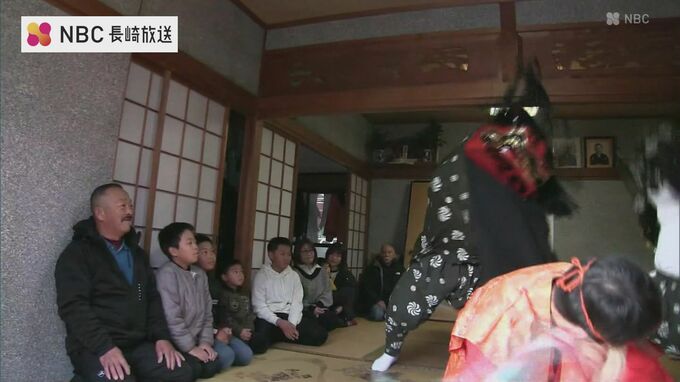 長崎県五島市三井楽町で正月の伝統行事「獅子こま舞」が行われました。