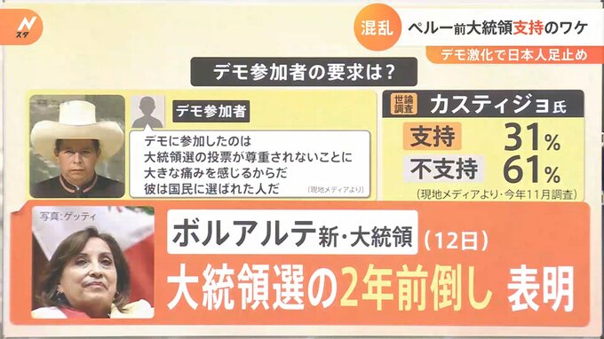 2022年11の調査によると、ペルー議会を支持する人は10%、不支持が86%で、議会が罷免を決めたというところも大きなポイントになっているんです。