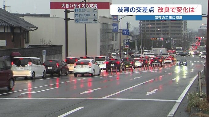 記者「午前7時50分です。通勤ラッシュで今年も渋滞しています。右折レーンの改良で、交差点の車の流れはどうなったのでしょうか」