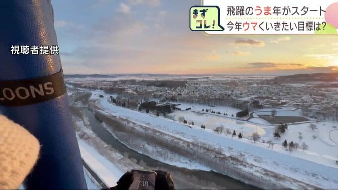 2026年がスタート!北海道各地 人々が集まった場所の新春スケッチ 今年“ウマ”くいきたい それぞれの目標 北海道放送 2026年1月5日(月) 17:26 国内 《気球 初日の出フライト》 幕別町では、熱気球に乗って十勝晴れの空に飛び、ご来光を上空で拝む「初日の出」フライトも。 参加者 「何よりも健康でいられるように、また1年過ごせたらいいなと」