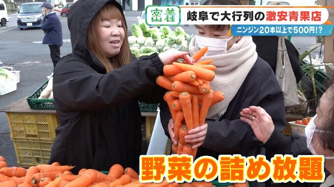 「ニンジン詰め放題。詰め放題じゃなくて“積み放題”」