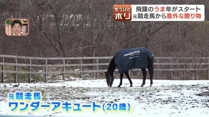 こちらは数々の重賞レースを制した、元競走馬の「ワンダーアキュート」。のんびり余生を過ごす彼には、すごい特技があるんです。