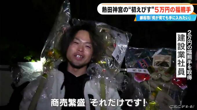 (2万円の福熊手を手にした会社員・建設業)