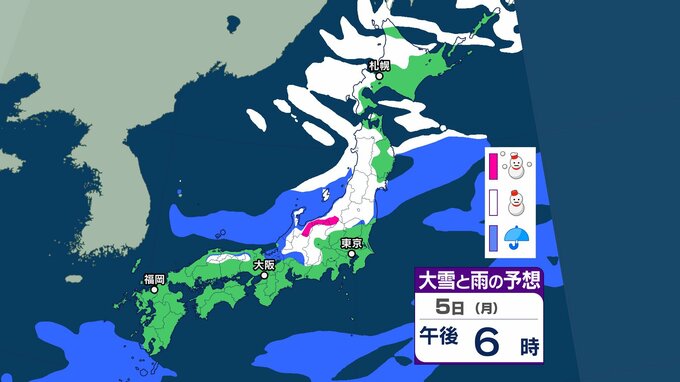 【大雪情報】全国的に今月7日(水)にかけて強風や風雪、高波に注意 東日本日本海側ではあす6日(火)にかけて大雪による交通障害のおそれ【気象庁 雪雨シミュレーション/5日午後7時更新】 RSK山陽放送 2026年1月5日(月) 18:58 国内 雪と雨のシミレーションをみる 5日(月)3時間ごとの雪と雨のシミュレーション【画像③④】 【画像②】 【画像③】