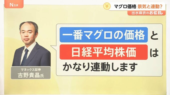 マネックス証券 吉野貴晶さんによると「『一番マグロの価格』と『日経平均株価』はかなり連動する」ということです。