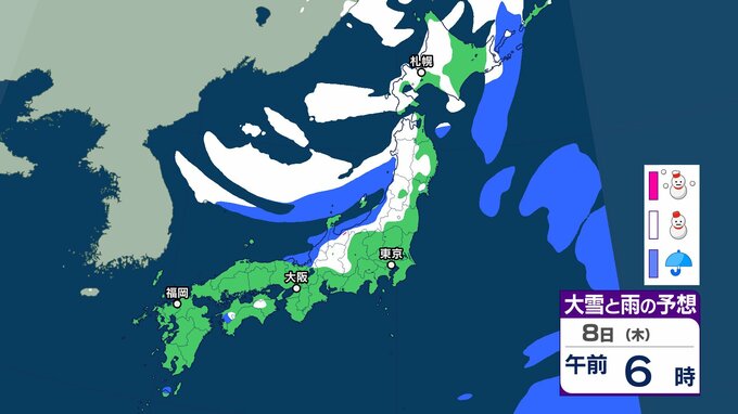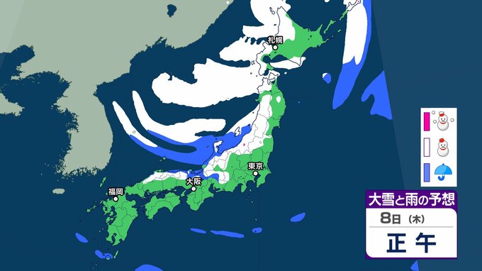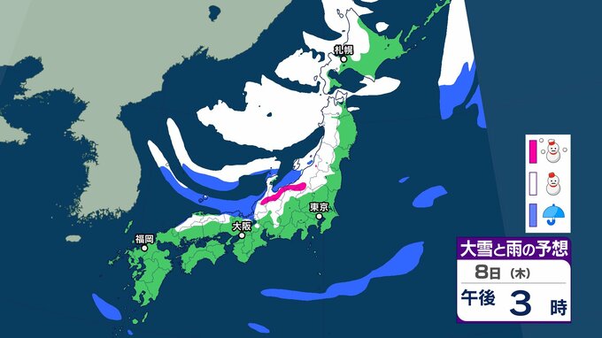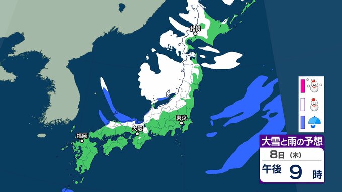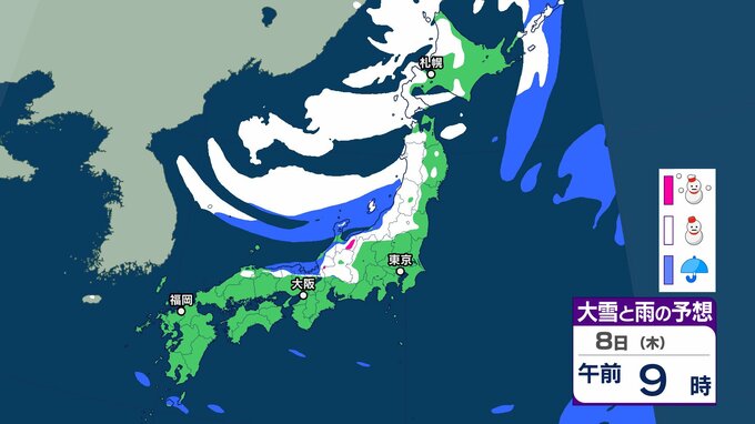 【大雪情報】3連休(成人の日) 今季“最強クラスの寒波”到来→日本海側は警報級の大雪、吹雪に警戒 近畿・中国・四国・九州など西日本の平野部でも降雪のおそれ 交通機関への影響など注意【気象庁雪雨シミレーション/8日午後8更新】 7時間前
