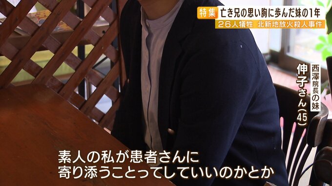 今年4月、伸子さんはある人を訪ねていました。その相手は心理士の土田くみさん。伸子さんは元患者らと接する中で「本格的に心のケアに取り組みたい」と心理カウンセリングを学ぶことにしたのです。土田さんは、20年前から心理カウンセラーを養成する講座を開いていて、伸子さんの兄・西澤さんも教え子の一人でした。
