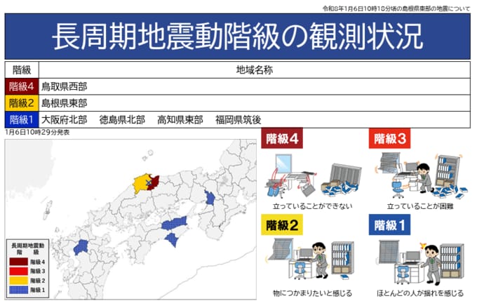 鳥取で長周期地震動「階級4」を観測 大阪、四国、九州でも「階級1」