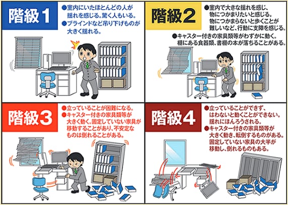 2は、室内で「大きな揺れ」を感じ、物につかまらないと歩くのが難しくなります。