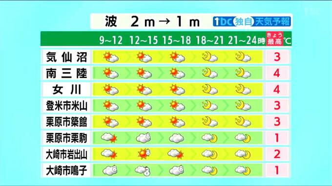 ■女川:最高気温4℃ ■登米市米山:最高気温3℃
