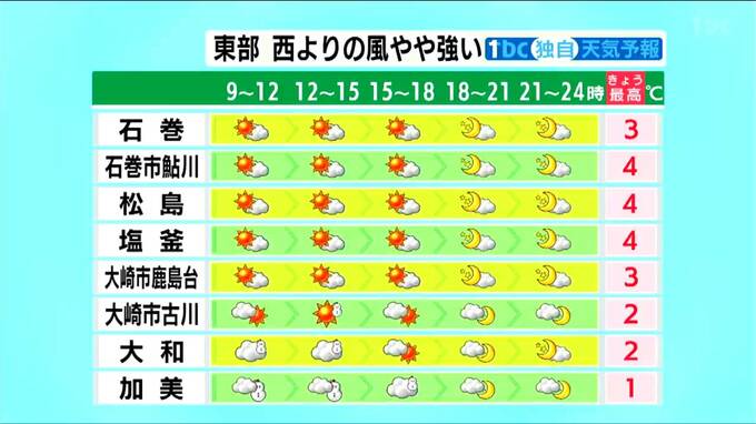 ■石巻:最高気温3℃ ■石巻市鮎川:最高気温4℃