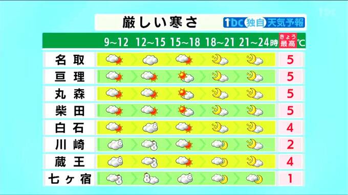 ■白石:最高気温4℃ ■川崎:最高気温2℃