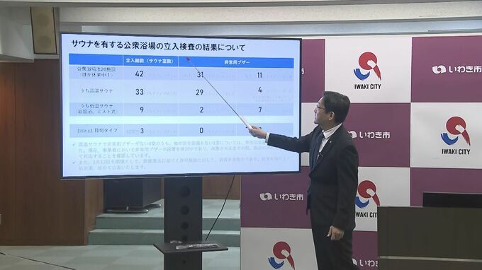 いわき市の内田市長は、6日の年頭会見でその結果を公表し、検査をした42のうち11のサウナ室では室内に非常用ブザーがなく、3つのサウナ室はドアノブ式のドアだったことが分かりました。