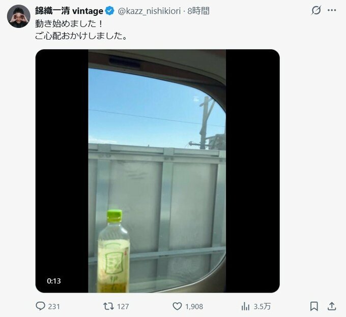 そして11時55分、錦織一清さんは、Xを更新し「動き始めました! ご心配おかけしました。」と、新幹線が動き出したことを報告しています。