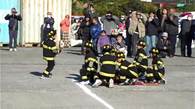 6日は、消防車両によるパレードの後、地元の幼稚園児による実際のポンプを使った消火活動や、救助活動などが披露されました。