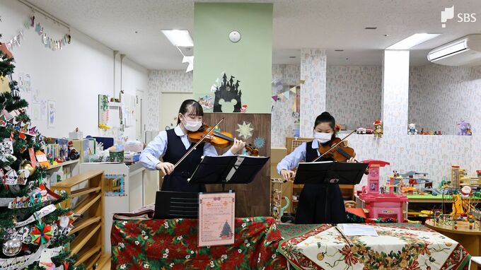 また、12月22日には、小児科病棟で静岡雙葉高校の生徒によるバイオリンのクリスマスコンサートも行われました。
