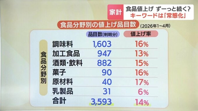 帝国データバンクは、今のペースが続けば、今年1年間にあわせて1万5000品目が値上げされ2024年と同じ水準になると予想しています。