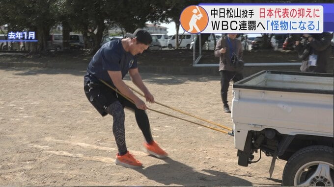 インタビュー中も、持ち前の負けず嫌いをのぞかせる松山選手。ゆるぎなき自信は徹底した準備に裏打ちされています。オフの期間の目標は「球速アップ」。最速159キロのストレートにさらに磨きをかけるためには、何でもやります。2025年1月の自主トレでは、約1トンの軽トラックを引っ張る異色のメニューを組み込みましたが、そこにも松山投手の探求心があります。