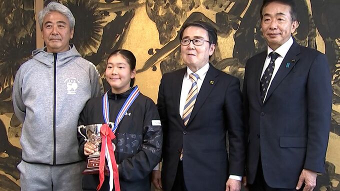去年10月の「RSK全国選抜ジュニアテニス大会」で、優勝した平井萌生奈(ひらい・めいな)選手が香川県の池田知事を表敬訪問しました。