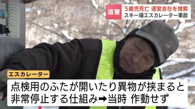 警察は、エスカレーターの現場検証も行い、スキー場の安全管理の体制などに問題がなかったか捜査を進めています。