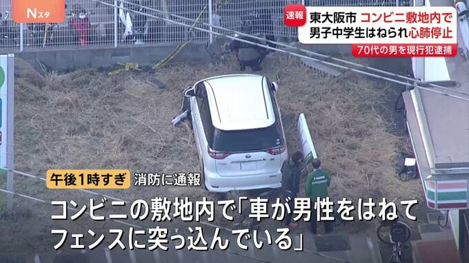 きょう午後、大阪府東大阪市のコンビニエンスストアの駐車場で男子中学生が車にはねられ、心肺停止の状態で病院に搬送されました。午後1時すぎ、東大阪市中新開1丁目にあるセブン-イレブンで「車が男性をはねてフ…
