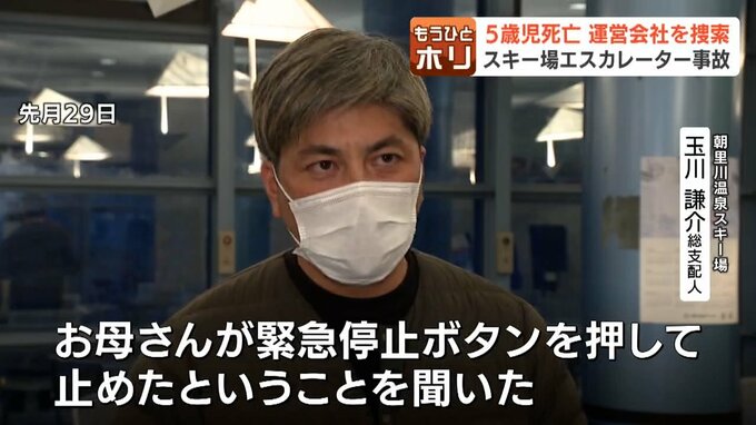 また、スキー場には、同様のエスカレーターが合わせて4基あり、これまでにも、利用者が転倒するなど複数の事故が起きていましたが、監視員を常時配置せず、事故当時も不在でした。