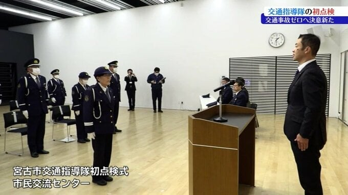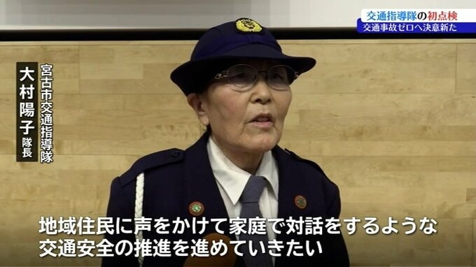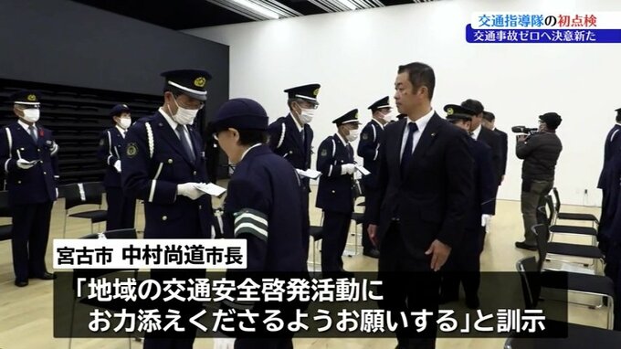 岩手県宮古市で市民の交通安全を守る交通指導隊の初点検が行われ、交通事故ゼロを目指して隊員が新年の活動をスタートさせました。