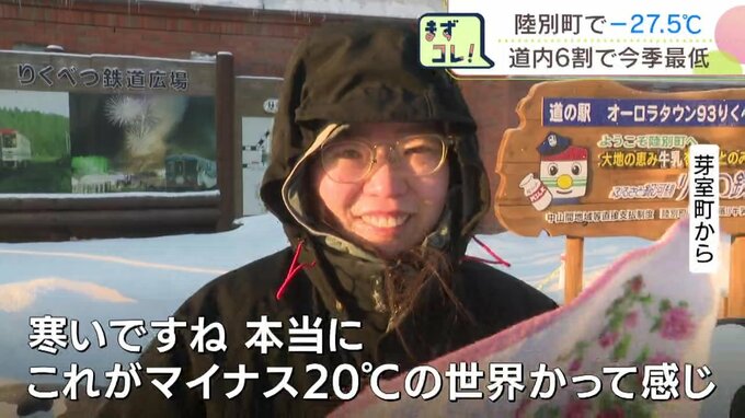 北海道陸別町の6日朝の最低気温は-27.5℃と、今シーズンの全国最低を更新。