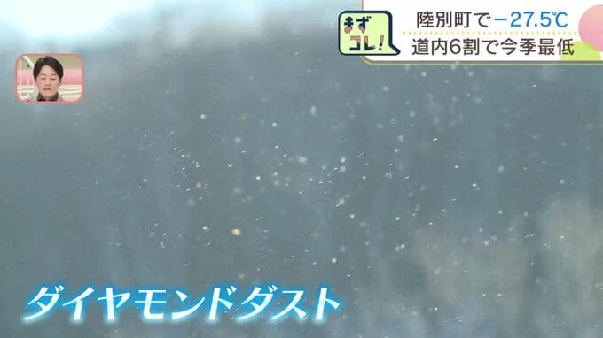 宝石のように輝くダイヤモンドダストに…空気中の水分が冷やされ、樹木に吹き付けられてできる「樹氷」も見られました。