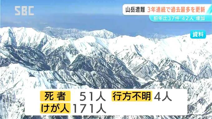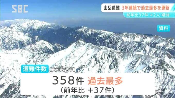 長野県内で去年(2025年)1年間に発生した山岳遭難の件数と遭難者数は、3年連続で過去最多を更新しました。