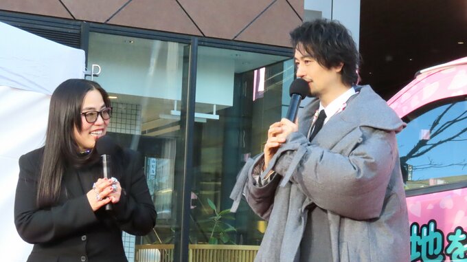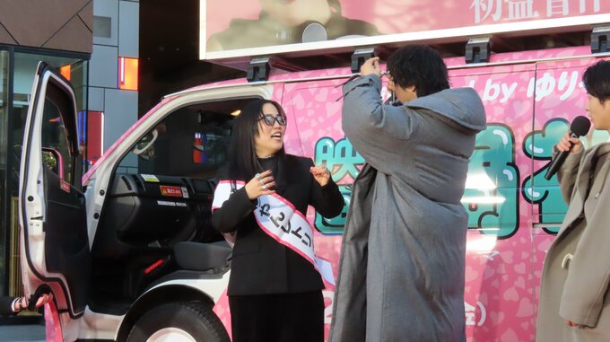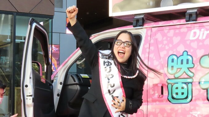 映画は、ゆりやんさんが自身の今までの恋愛をすべて詰め込んだ、こん身の初監督作品。出発式を皮切りに、ゆりやんさんは全国各地で街頭演説をして宣伝活動を行います。
