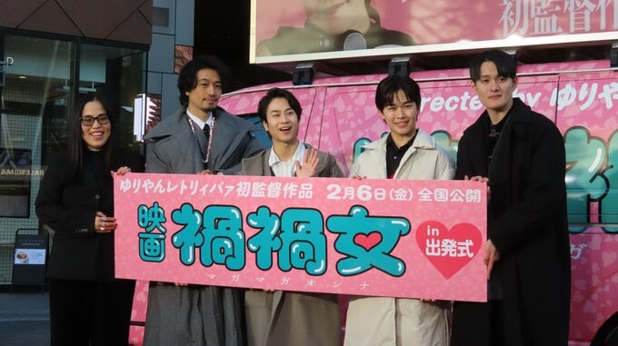 6日、映画『禍禍女』全国行脚 出発式に、監督を務めたゆりやんレトリィバァさんをはじめ、前田旺志郎さん、九条ジョーさん、鈴木福さん、斎藤工さんらキャスト陣が登壇しました。
