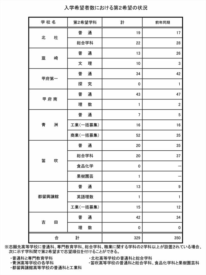 【全高校掲載】中学3年生の第2次進路希望調査 全日制公立高校の全体は0.95倍で過去最低 山梨