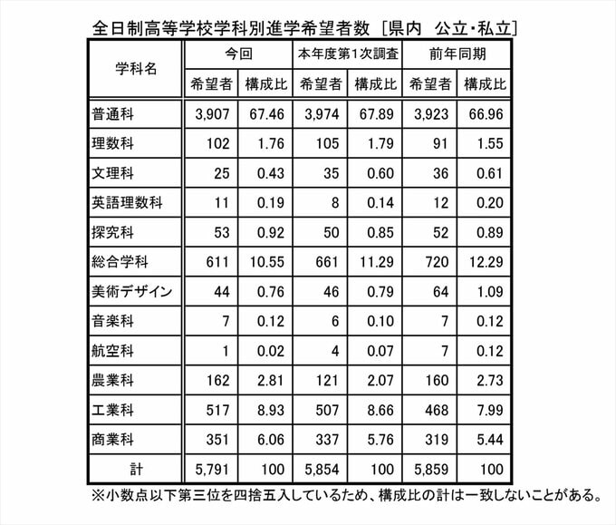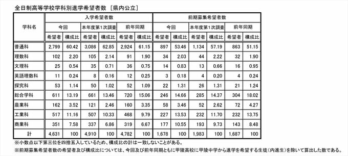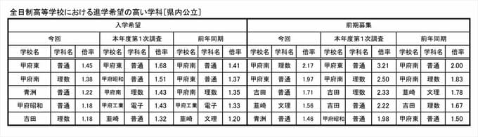 【全高校掲載】中学3年生の第2次進路希望調査 全日制公立高校の全体は0.95倍で過去最低 山梨